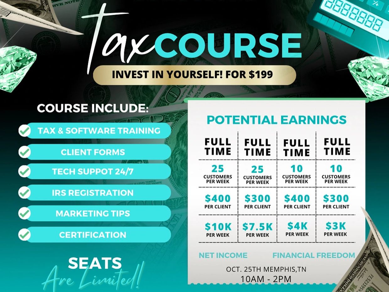 Whether you’re looking for a new career path, a profitable side hustle, or to expand your financial skills, this class will give you the tools, confidence, and knowledge to succeed in the tax industry.